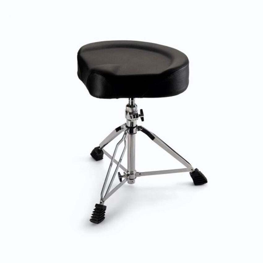 Springy yet firm, the cushioned seat absorbs pressure on your body and evenly distributes your weight to minimize fatigue while you play. Its saddle-style contour leaves extra space in front of the throne, enabling a wide range of motion for your legs, making it easier to operate foot pedals. And a raised ridge around the back and sides helps you stay centered and maintain proper posture during live performances, recording sessions, and practices.