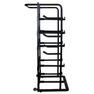 - Casters and a handlebar provide handcart-style mobility for ease of relocating the rack