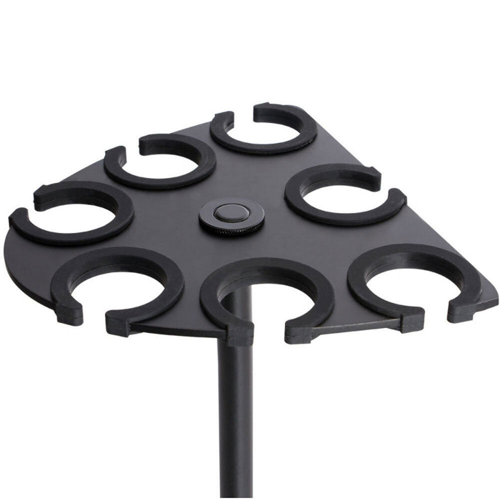 This sturdy metal plate mounts to standard mic stands and features separate slots to hold up to seven mics in place. Flexible padding on the individual mic slots automatically adjusts to the size of each mic, providing a secure grip while protecting against scratches.