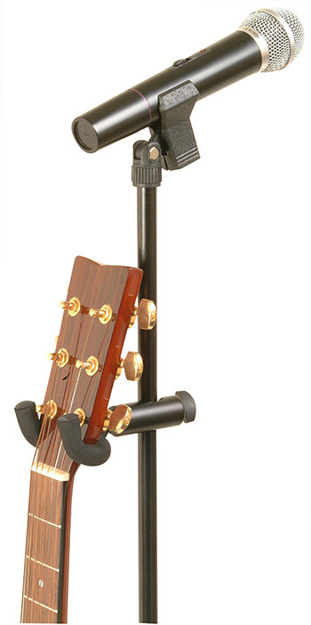 The OSGS7800 takes advantage of the patent-pending u-mount clamp and lets your existing mic stand pull double duty as a guitar stand.