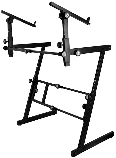 Truly professional. Truly heavy duty! This stand allows for independent height and width adjustments and can hold 2 keyboards, yet folds into a space smaller than most keyboard cases.