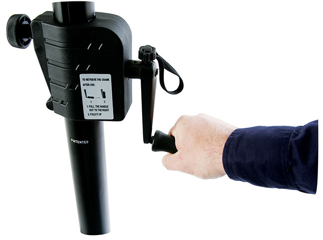 The easy to use power crank up height adjustment system operates with any standard electric or cordless drill.