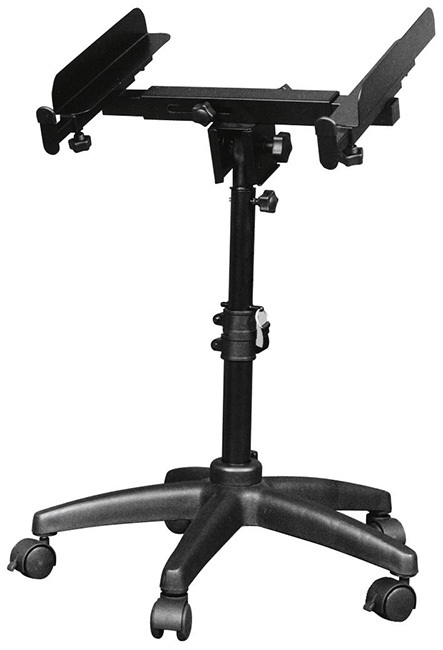 The rubberized support arm protects and grips gear, while the heavy-duty base with casters is completely adjustable!
