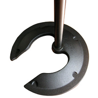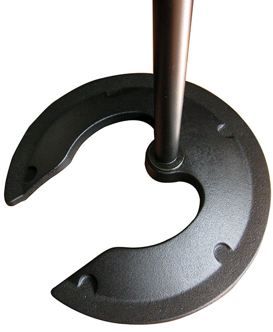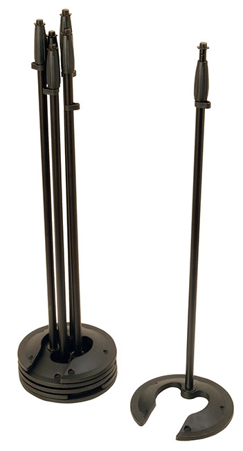 The funny thing about round base stands, compared to tripods, is that they take up less room on stage, but more room in the truck, the closet, and anywhere else you are not actually using them.