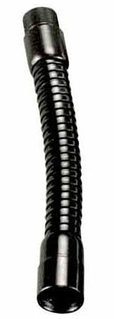 6" Gooseneck, black. Solid steel male and female threaded ends. The flexible neck is made from interlocking rolled metal.