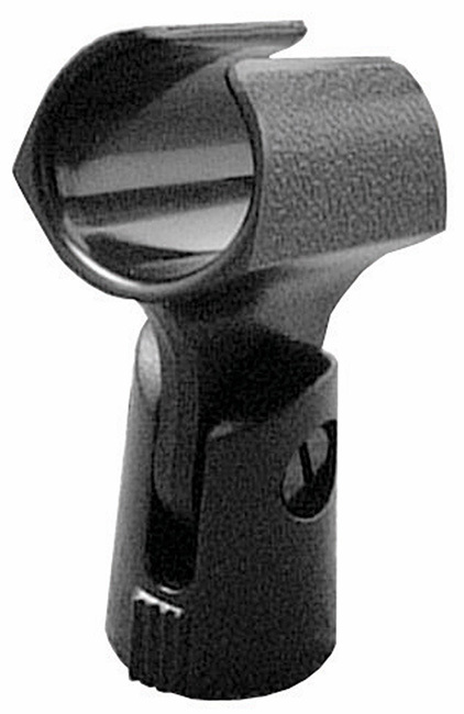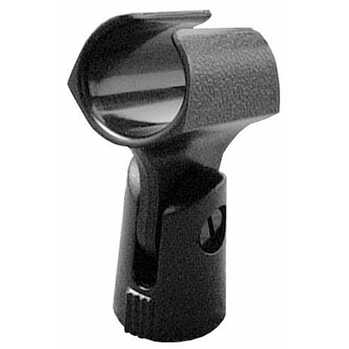 On Stage microphone holder with a sleek European style, hard plastic. For use with most dynamic mics.