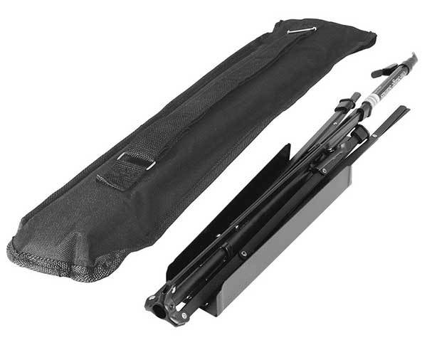 The leg assembly slides down the base of the main shaft and locks into place with a patented squeeze and lock lever mechanism. All edges are securely bound and the durable material make this bag a smart choice to protect your stand.