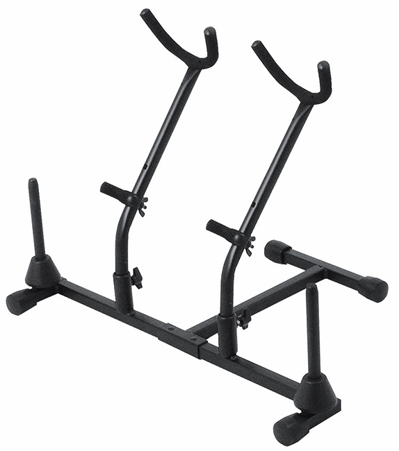 This versatile stand holds two alto or tenor saxophones in any combination and includes two screw-in pegs for either flutes or clarinets.