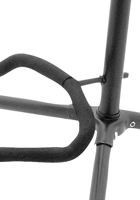 It features a removable lower stepped yoke, security strap on the upper yoke, and adjustable height.