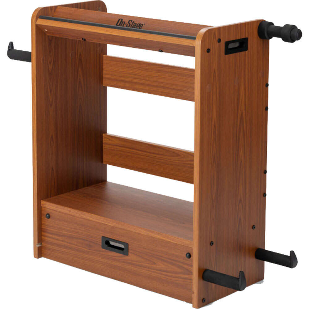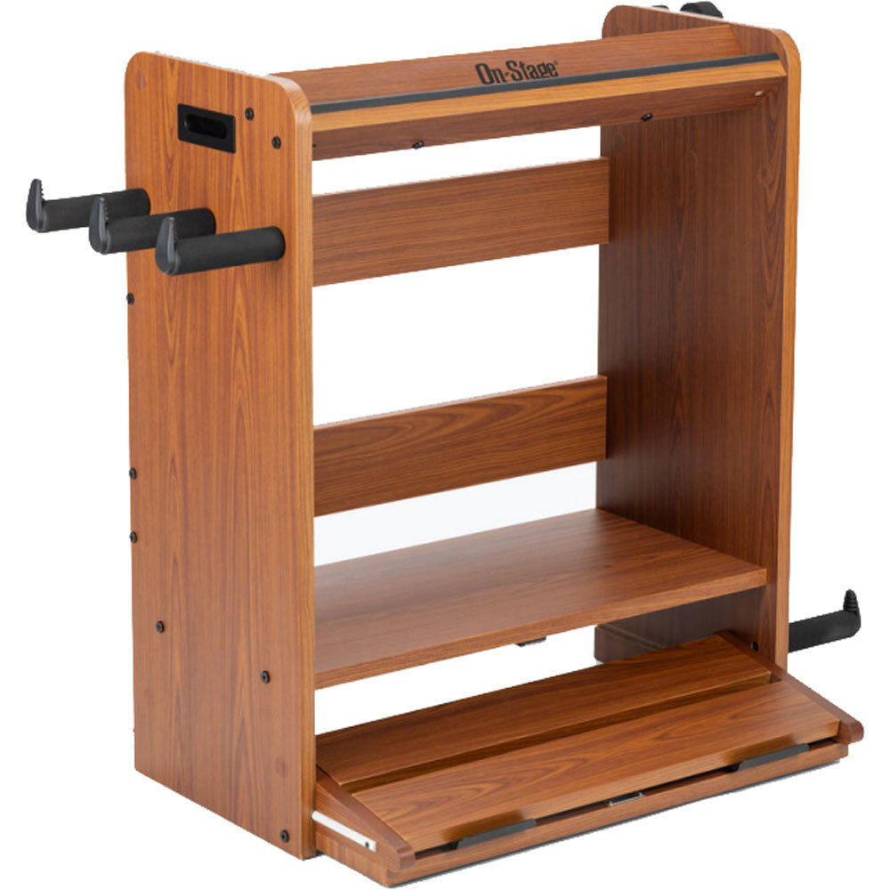 Keep all your guitar gear safely organized, on display, and ready to play with the GWS5000B Guitar Workstation. This multipurpose workstation is a combination amp stand, guitar stand, cable and strap hanger, pedalboard, and accessory tray rolled into one convenient and visually appealing package.