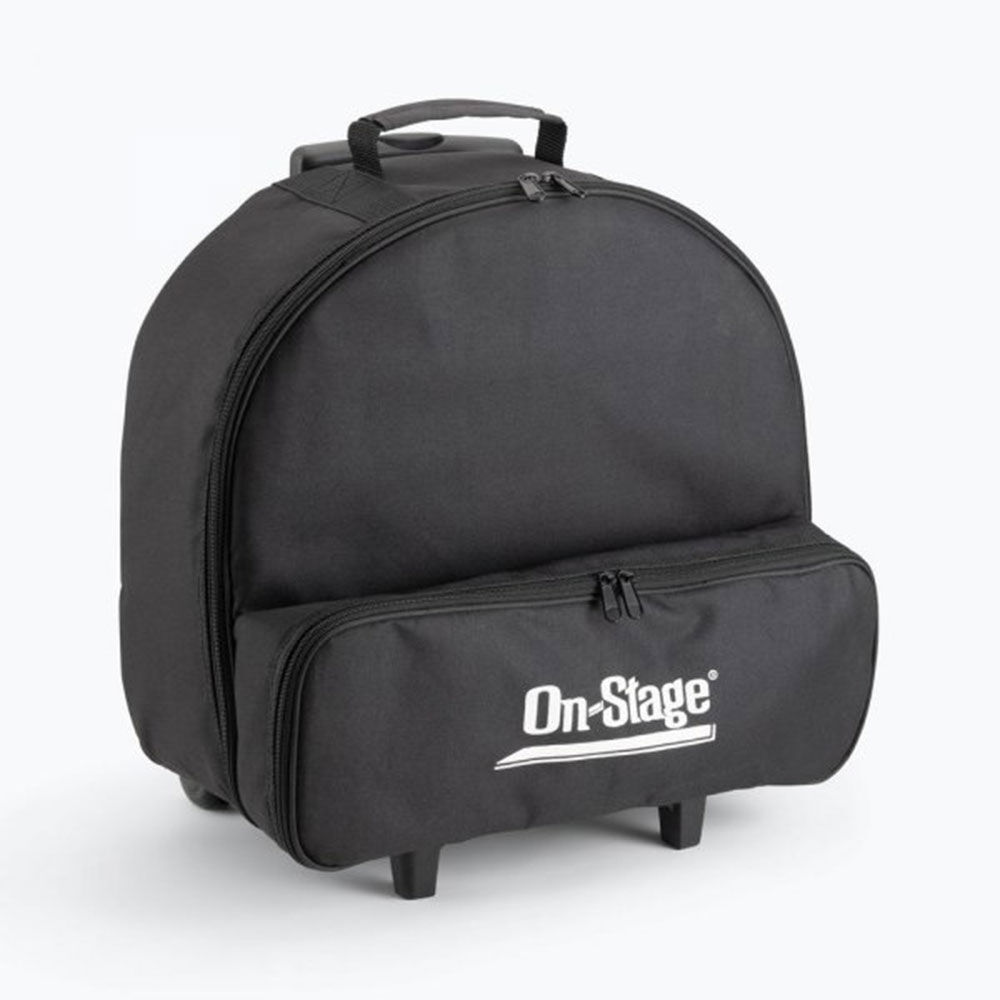 The stand folds down and fits-along with the snare, practice pad, and sticks-into the included bag. For ease of transportation, the bag's built-in wheels enable suitcase-style rolling.
