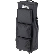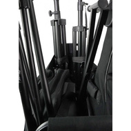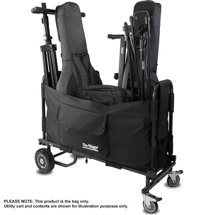 The reinforced bottom provides a solid surface for placing amps and other gear while the sides enclose and stabilize non-stackable items such as drum hardware, enabling more equipment to be loaded at once. Corner straps save space by securely holding speaker, lighting, and mic stands in the upright position while exterior accessory pockets carry anything from cables to microphones or other small accessories. For safe transportation, hook-and-loop straps ensure the bag is safely attached to the cart frame.