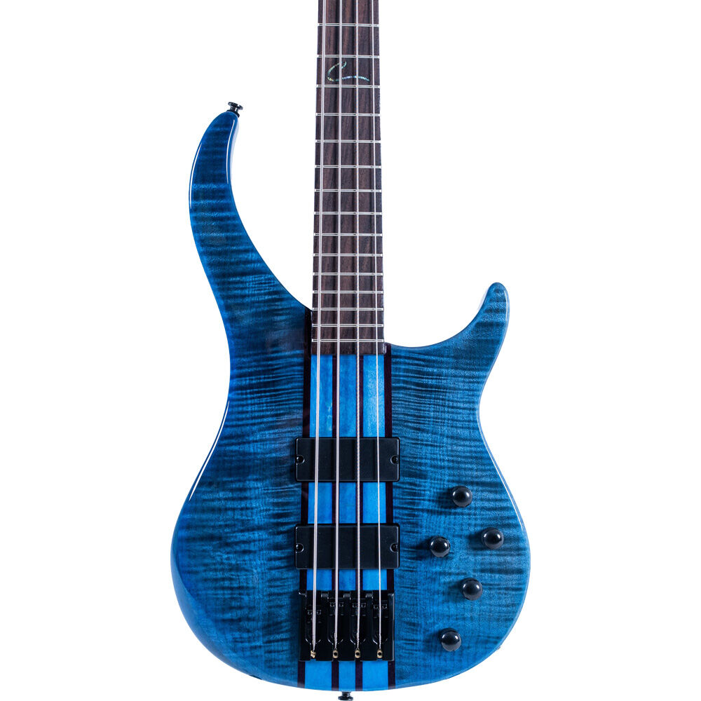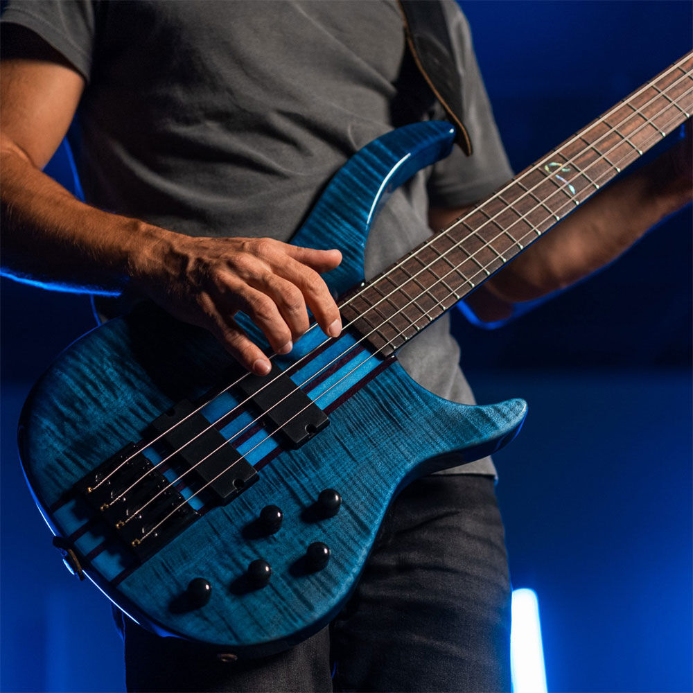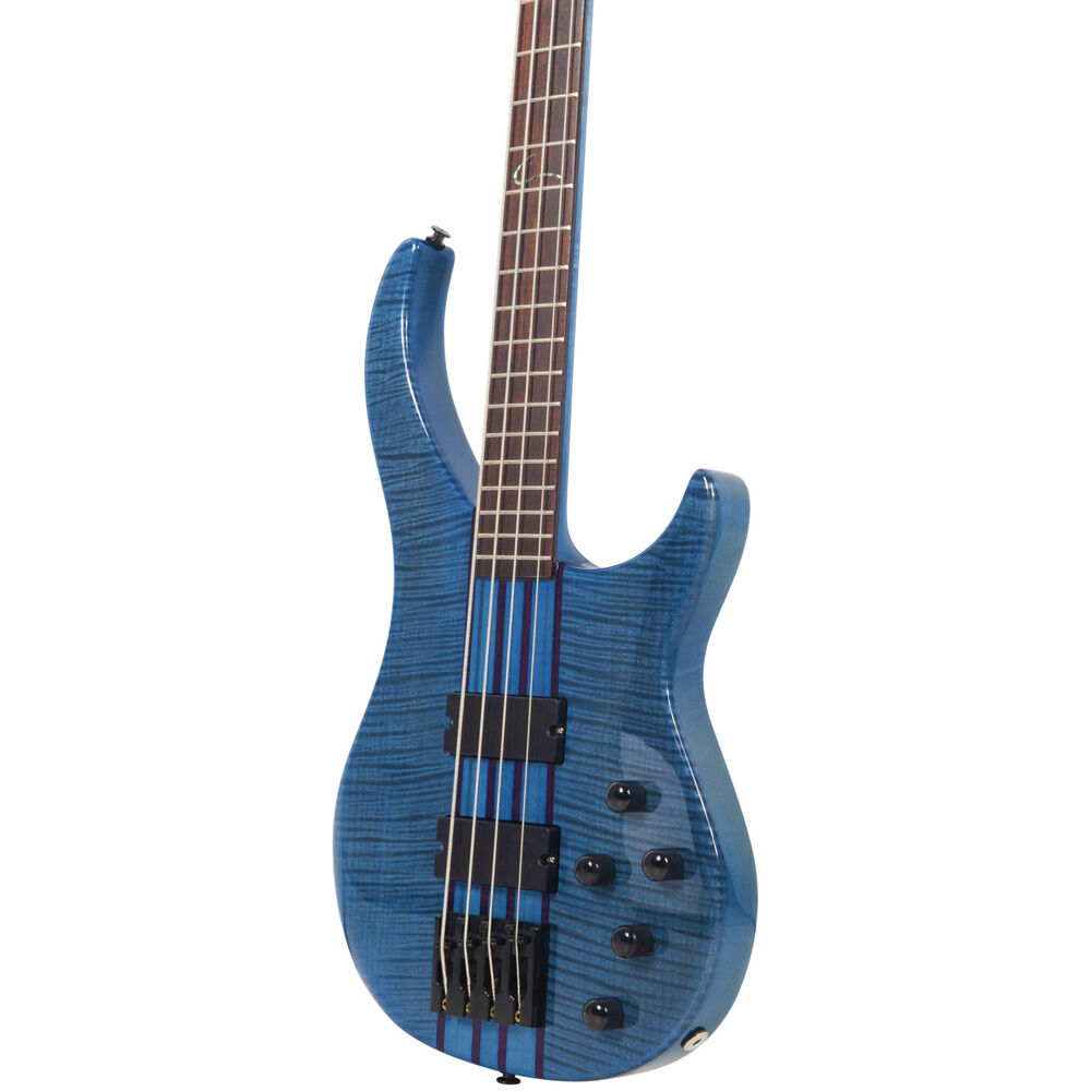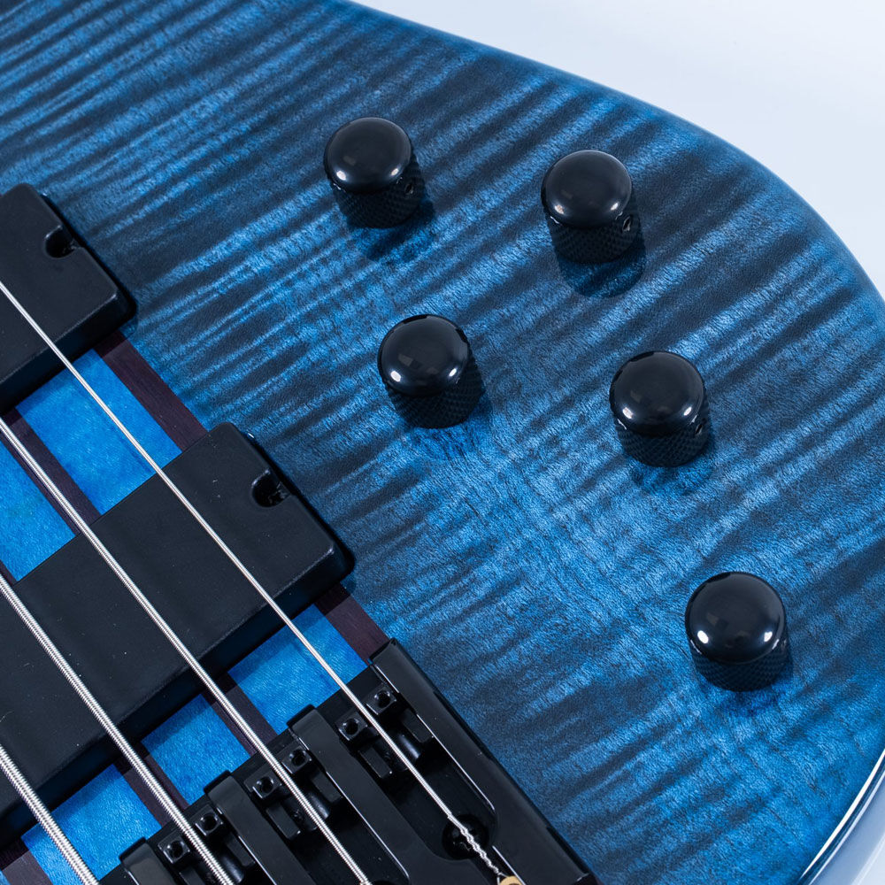 There are two models available: the Cirrus 4-string and 5-string. Each model offers Flame Maple, Flame Maple Trans Black, Flame Maple Trans Blue, or Wenge wood for the top material. The Cirrus 4 offers the additional option of a Quilt Maple top. The maple tops are paired with alder bodies, achieving a harmonious balance of brightness and midrange warmth. Similarly, the pairing of the wenge top with walnut creates a distinctive tonal fusion resulting in a rich, balanced sound. A natural oil finish is used, with the exception of the Flame Maple Transparent Blue and Transparent Black models, which have a corresponding Gloss Burst finish for a dazzling splash of color.