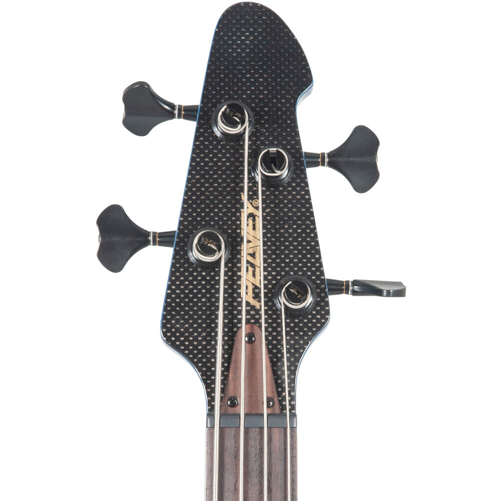 On each model, a rosewood fretboard with 24 medium jumbo frets is reinforced by purple heart wood stringers, which not only add to the tonal depth but provide an eye-catching design that complements each instrument’s overall look. Another captivating signature feature is the Cirrus inlay on the 12th fret. The engineering team also tips their hat to the lightweight 1997 design by using graphite pultrusion, as well as a graphite top nut and graphite overlay headstock with Peavey’s block letter logo.