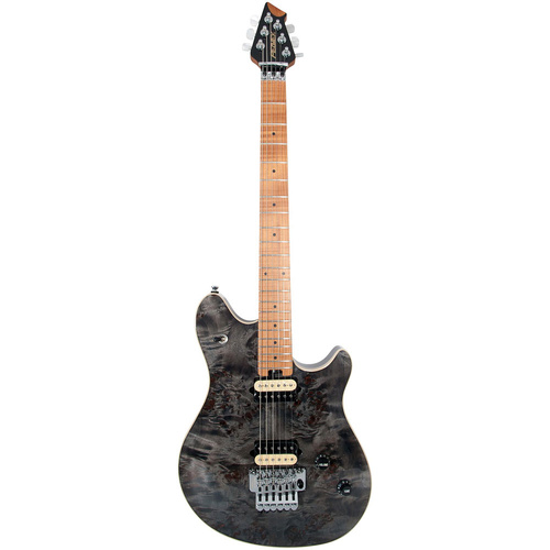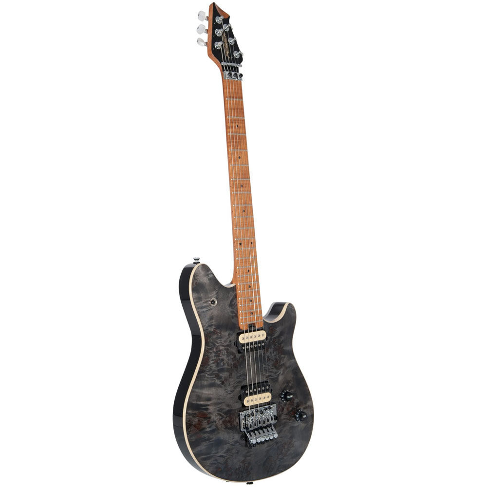 Crafted with a Roasted Maple neck, the rock-legend-worthy HP 2 Poplar Burl Transparent Black electric guitar offers exceptional stability and warp resistance, maintaining its tune in the most demanding circumstances. Dual graphite reinforcement bars and an adjustable steel torsion rod enhance its strength and playability, ensuring the neck remains straight and true even under the most intense playing conditions. Custom-wound Peavey humbucking pickups deliver optimal tonal response, providing a rich, full sound that captures every nuance of your playing. A Switchcraft® 3-way toggle switch enables versatile soundscapes, putting you firmly in control.