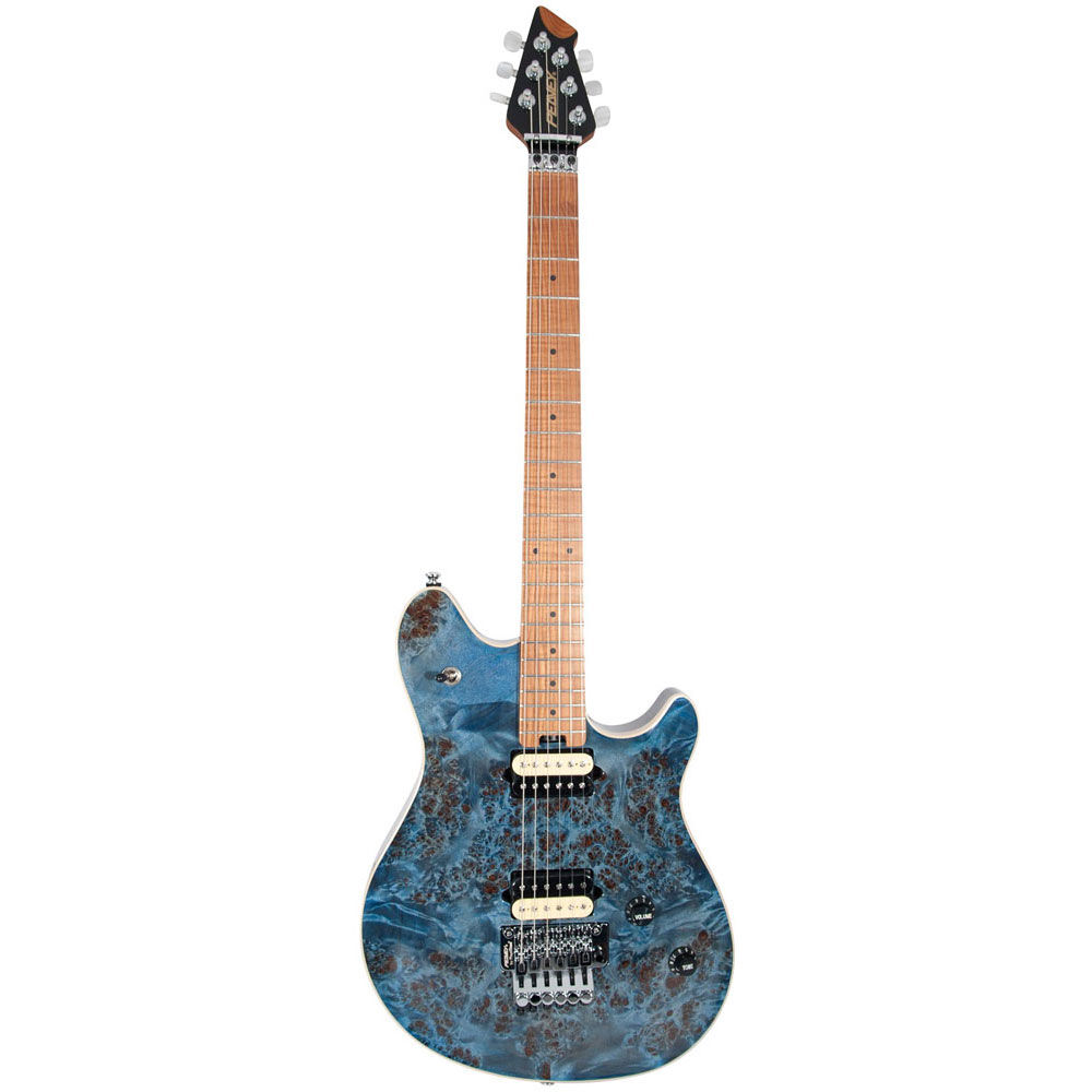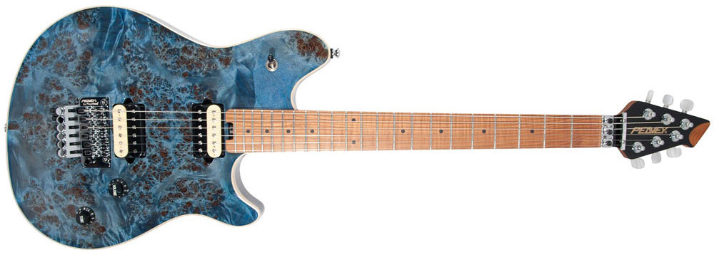 Crafted with a Roasted Maple neck, the rock-legend-worthy HP 2 Poplar Burl Transparent Blue electric guitar offers exceptional stability and warp resistance, maintaining its tune in the most demanding circumstances. Dual graphite reinforcement bars and an adjustable steel torsion rod enhance its strength and playability, ensuring the neck remains straight and true even under the most intense playing conditions. Custom-wound Peavey humbucking pickups deliver optimal tonal response, providing a rich, full sound that captures every nuance of your playing. A Switchcraft® 3-way toggle switch enables versatile soundscapes, putting you firmly in control.