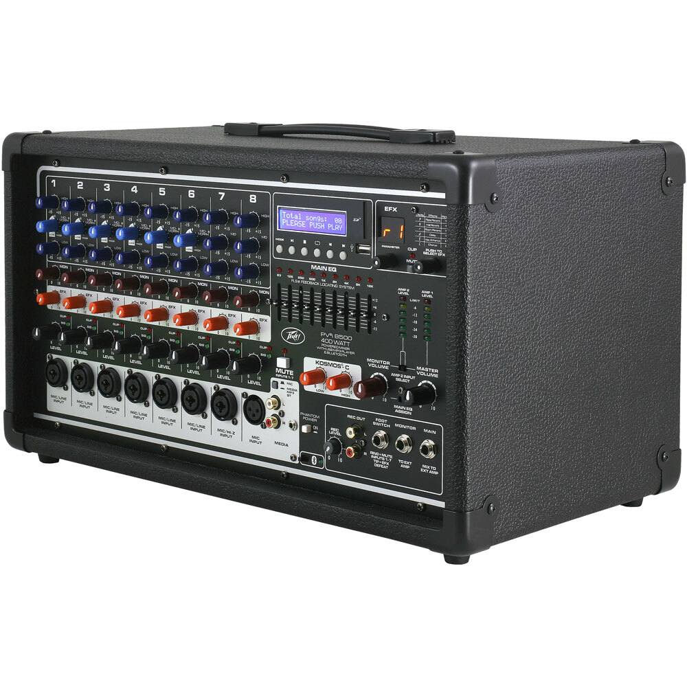 The Peavey PVi 8500 is a revolutionary all-in-one powered mixer with everything a musician needs: up to eight combination XLR and 1/4" inputs using Peavey's award-winning mic preamps, and 400 watts of peak power for crystal-clear audio reproduction.