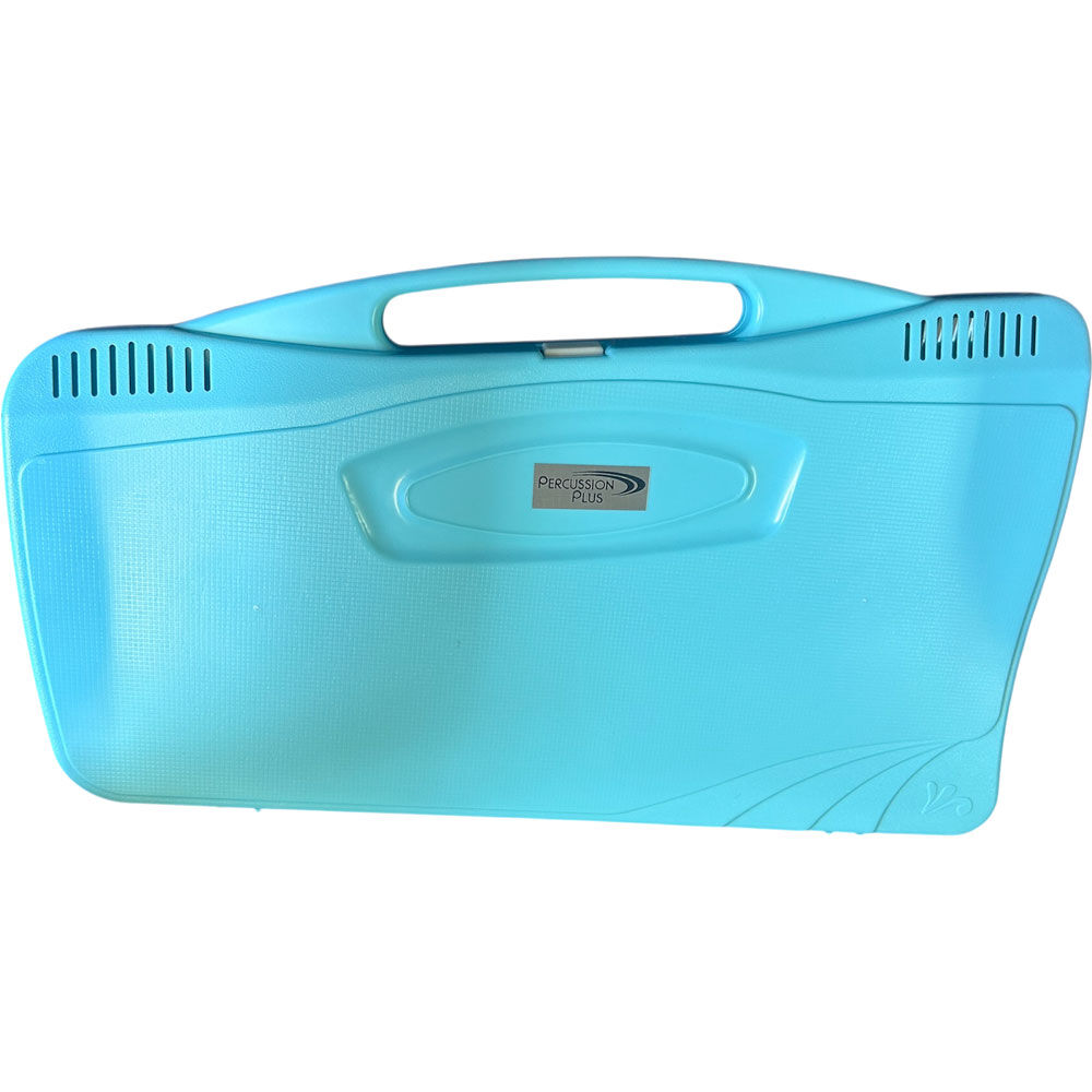 Percussion Plus 25-Note Metallophone with silver metal keys fixed in a closeable coloured plastic carry case. Comes with beaters.