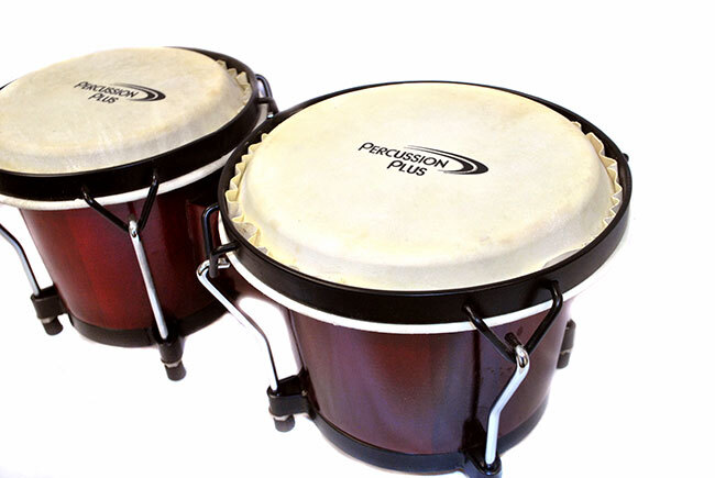 This Percussion Plus wooden bongo set comes in a gloss red lacquer finish and features 6" & 6-3/4" natural hide heads, wood shell construction and black powder coated hardware. This package also includes a black canvas bongo carry bag to help you transport and protect your bongos.