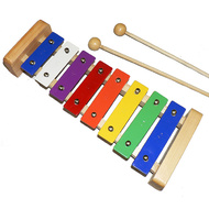 Percussion Plus 8-note glockenspiel with natural wood frame and multi coloured keys. Comes with beaters.
