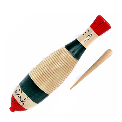 Percussion Plus medium-size wooden fish shape guiro in a 3-Tone Green/Red/Natural finish. The Guiro has an overall length of 32cm and a head diameter of 7.1cm. Comes with a wooden striker.