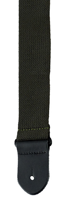 This 2" wide guitar strap has an adjustable length of 39" to 58" and is made with Army Green coloured cotton and black leather ends.