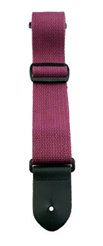 This 2" wide guitar strap has an adjustable length of 39" to 58" and is made with Burgundy coloured cotton and black leather ends.