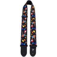 This is a 2" wide guitar strap with a "Guitars Allover" design dye-sub on poplin fabric. This strap is adjustable from 39" to 58" in length.