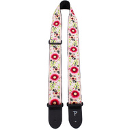 Perris 2" wide guitar strap made from high quality jacquard ribbon sewn on tubular webbing with Black Genuine leather ends. From our "Stitched Collection" it features a Pink Floral Embroidery Design. It is adjustable in length from 39" to 58"