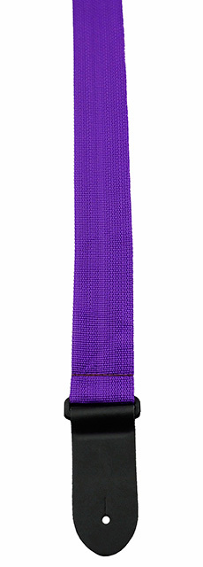 2" wide Poly Pro guitar strap in Purple colour with Black leather ends. Adjustable from 39" to 58"