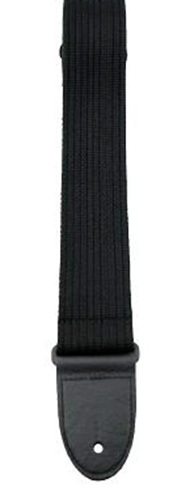 This is a 2" wide guitar strap with the adjustable length of 39" to 58" and is made with premium black striped cotton with deluxe garment leather ends.