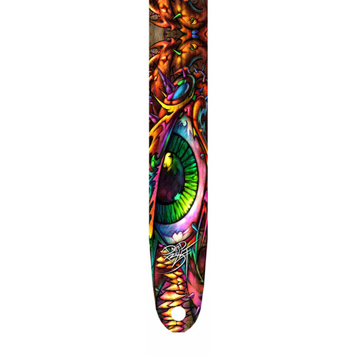 This is a 2.5" wide licensed Tattoo Johnny guitar strap with "Colourful Dragon Eyes" design. This 100% genuine leather strap is made with High Resolution Imaging which makes the picture crystal clear. This strap is adjustable from 44.5" to 53" in length.
