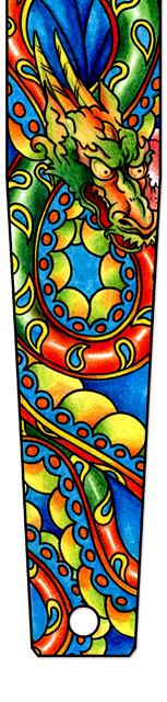 This is a 2.5" wide licensed Tattoo Johnny guitar strap with "Colourful Dragon" design. This 100% genuine leather strap is made with High Resolution Imaging which makes the picture crystal clear. This strap is adjustable from 44.5" to 53" in length.