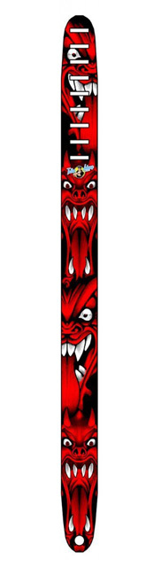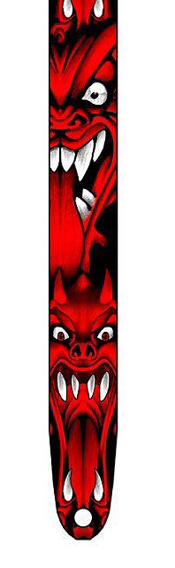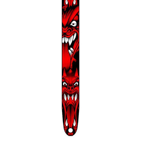 This is a 2.5" wide licensed Tattoo Johnny guitar strap with "Red Demon" design. This 100% genuine leather strap is made with High Resolution Imaging which makes the picture crystal clear. This strap is adjustable from 44.5" to 53" in length.