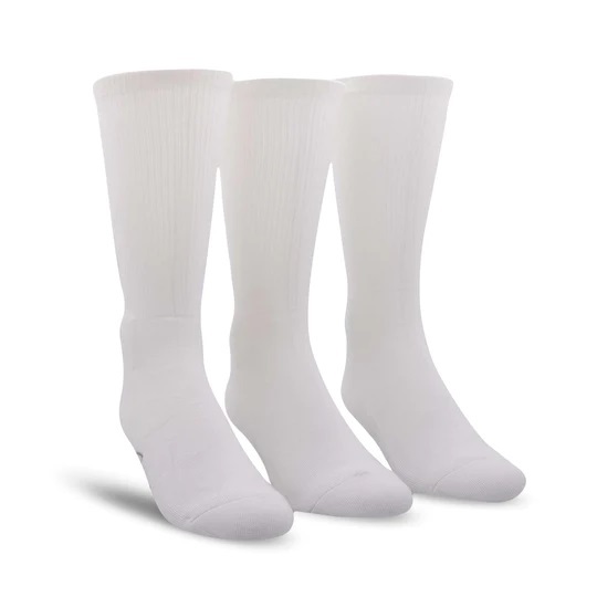 - 3 pairs of soft combed cotton blended with moisture wicking polyester made from recycled plastic bottles