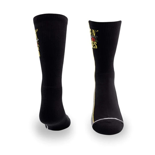 - 2 x 1 rib leg with knit-in classic Guns N' Roses logo and side stripe