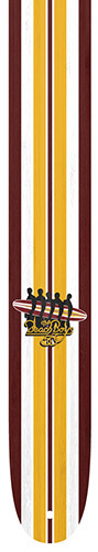 This is a 2.5" wide licensed Beach Boys guitar strap featuring the "Surfboard" design . This 100% genuine leather strap is made with High Resolution Imaging which makes the picture crystal clear. This strap is adjustable from 44.5" to 53" in length.