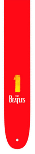 This is a 2.5" wide licensed Beatles guitar strap in red with "No.1" image. This strap is made from vegan friendly vinyl and has High Resolution Imaging which makes the images crystal clear. This strap is adjustable from 44.5" to 53" in length.