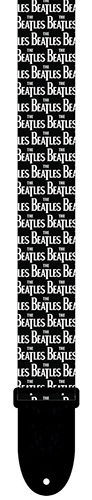 2" wide polyester "The Beatles" logo licensed Beatles guitar strap with vegan ends. Adjustable length from 39" to 58".