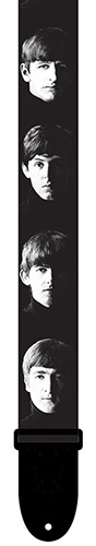 2" wide polyester "Band Faces" licensed Beatles guitar strap with vegan ends. Adjustable length from 39" to 58".
