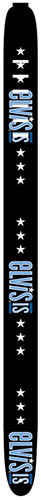This is a 2.5" wide licensed Elvis guitar strap with "Elvis Is" design. This 100% genuine leather strap is made with High Resolution Imaging which makes the picture crystal clear. This strap is adjustable from 44.5" to 53" in length.