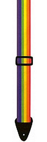 2" wide Rainbow coloured Poly Pro Webbing guitar strap with leather ends. Adjustable length from 39" to 58".
