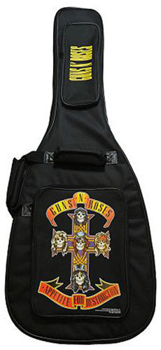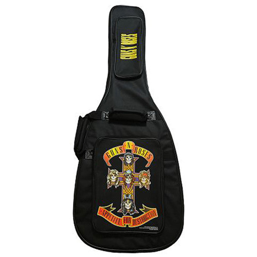 This licensed Guns N Roses bass guitar bag is black and features high resolution images that pay tribute to the iconic "Appetite For Destruction" album. The bag is made from 600D Nylon and has very strong zippers and thick padding. There are backpack style shoulder straps, multiple pockets and reinforced handles.