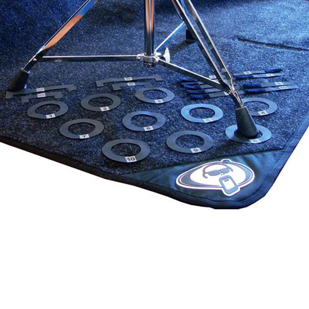 No tools required, virtually no weight added to the mat, minor adjustments can be made in seconds, discreet and super easy to use. Set your kit up as you normally would on your mat, lift the legs up and place 3 x circle markers on mat, place corresponding stand marker on stand. Place bass drum & hi-hat markers where required and you're ready to instantly set up gig after gig.