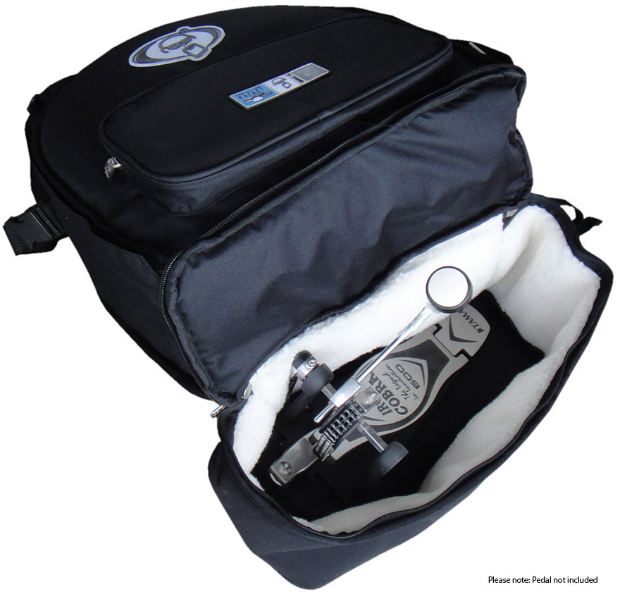 The case comes with an extra compartment for a single pedal. This is attached to the base of the snare case, it can be unzipped all the way round for easy entry and exit of the pedal, but it is not detachable so will always be where it was last left.