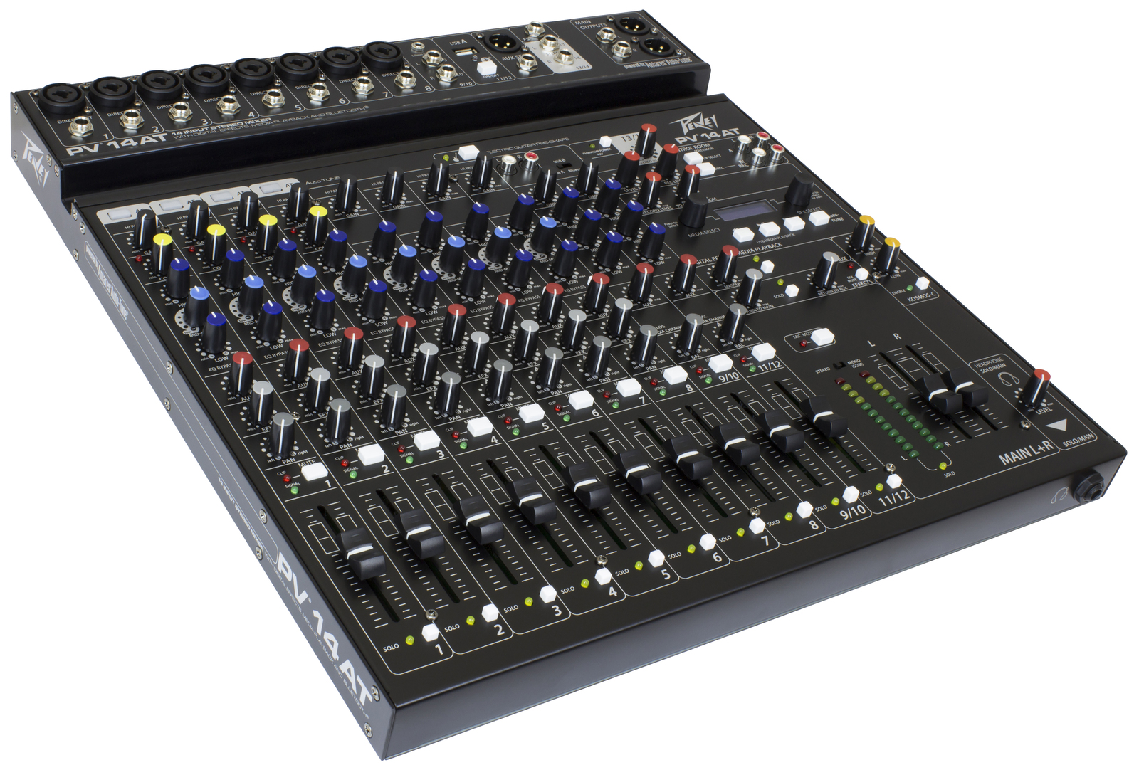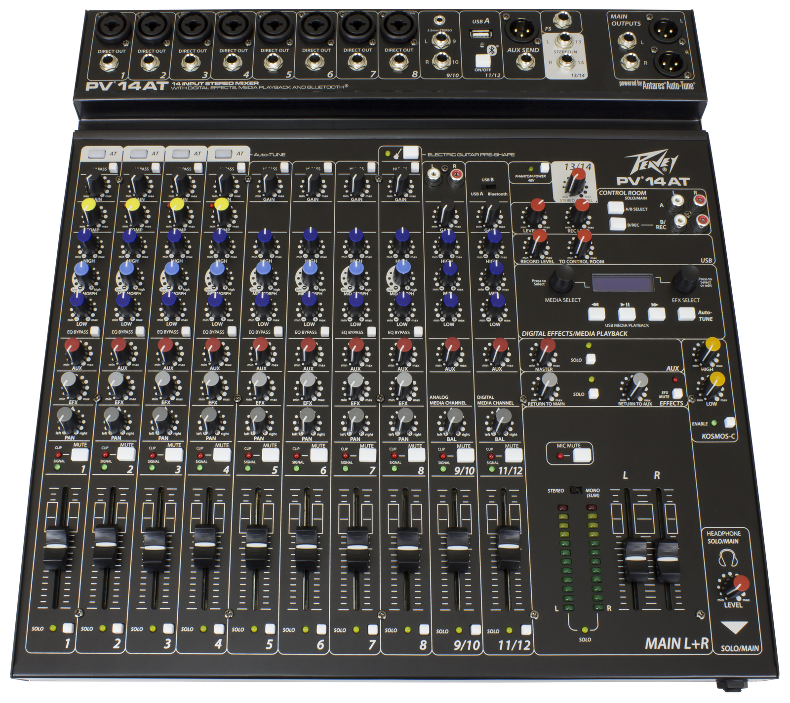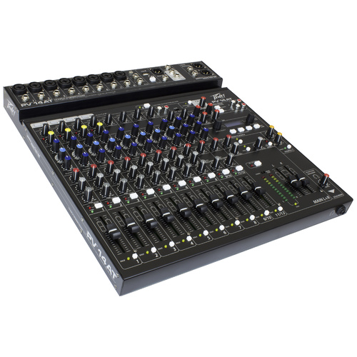The all-new PV 14 AT mixers come equipped with Antares Auto-Tune pitch correction, a technology that can literally help anyone sing in key and is used on professional recordings and live performances throughout the world. This technology is incorporated directly into a complete and powerful portable mixing solution, ensuring that your audience will experience perfectly tuned vocals to complement the crystal-clear audio of the mixer.