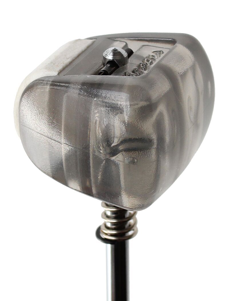 Without any tools, you can instantly change the Beater playing surface from the standard felt side (muted tone), to the hard plastic side (crisp attack). Simply push down the spring loaded beater head and rotate it to the desired playing surface, and it snaps into place, ready to play.