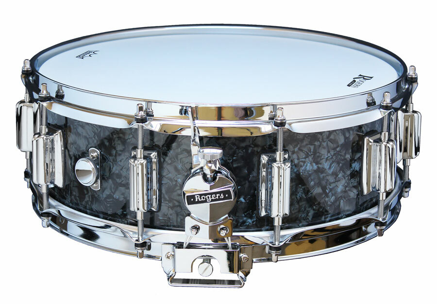 Rogers Beavertail Snare Drum in Black Diamond Pearl - Model No. 36BP is cool, dark and handsome. Black Diamond Pearl, a consistent fave among Rogers' fans, is now available in the Rogers' famous wood-shell Beavertail Dyna-Sonic Series.