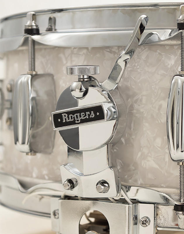 The spring-loaded cartridge bearing eliminates the constant readjusting of snare by holding the tension screw in fixed position, whether snares are on, or off. Rogers new replacement strainer is faithful to the original legendary "clock face" design, using the best casting and chroming processes.