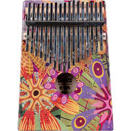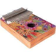 The Art Series Kalimba 17 Flower Power is made of high quality mahogany wood with a great and eye-catching design. The body amplifies the low frequencies, creating a full, clear and warm sound with a fascinating resonance. The high-quality metal reeds are tuned in C major and have a range of c' e" (C4 E6). Due to the stamped notes on the reeds, the kalimba is suitable for beginners as well as for advanced players.